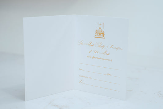 Catholic Mass Cards, A Mass Offering for You in Gold Foil, Mass Intention Cards